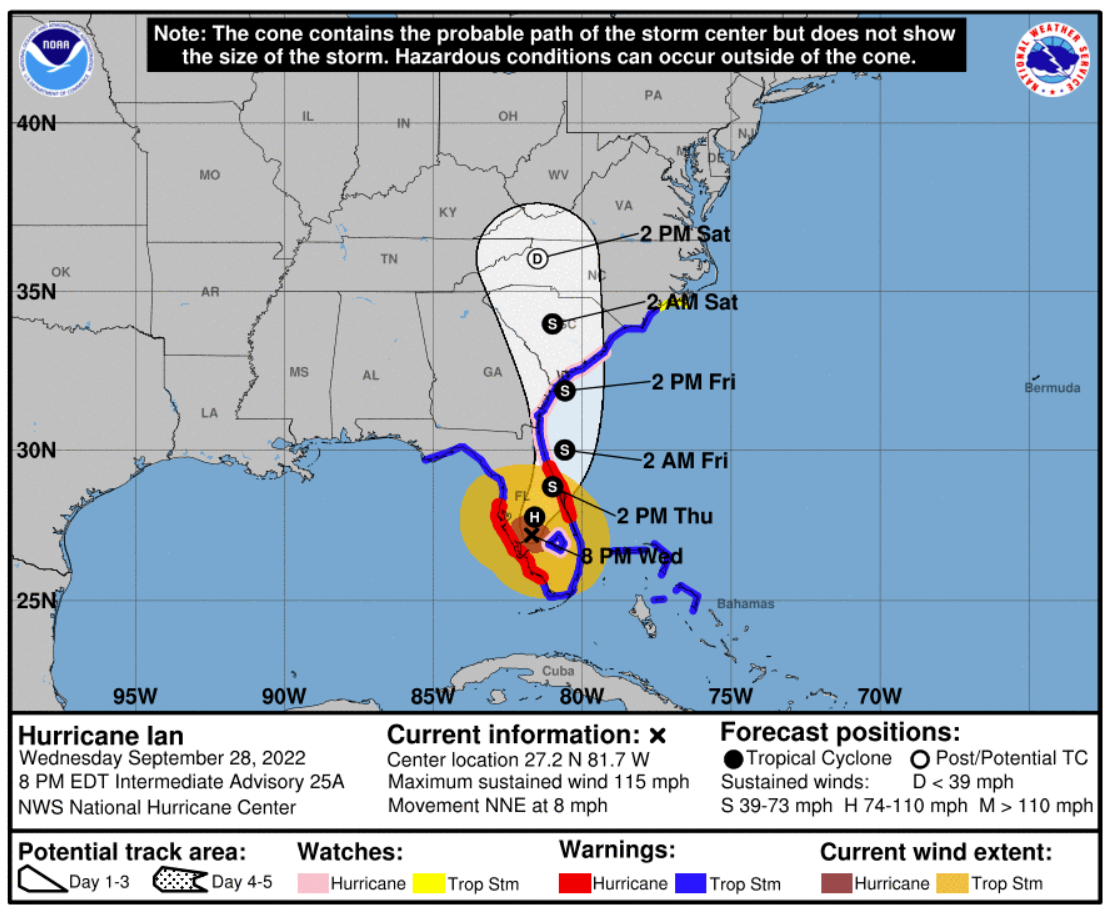 9-28-22 8:00 PM Update on Hurricane IAN from The National Oceanic and Atmospheric Administration